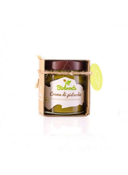 Die Biobronte Pistaziencreme enthält 45% D.O.P. Pistazien aus Bronte auf Sizilien. In der Region Bronte wachsen die besten Pistazien der Welt. Ihr Aroma ist füllig und intensiv. Daher schmeckt die feine Crema aus Pistazien auch so wunderbar vollmundig nach Pistazien. Ob pur oder als Füllung für feine Gebäcke.