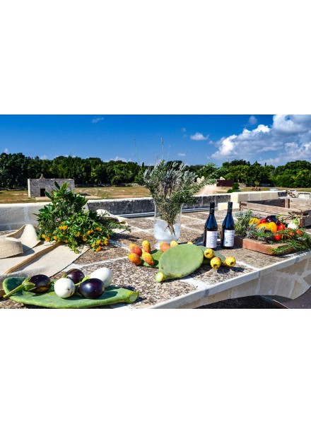 Camilla Rossi-Chauvenet übernahm im Jahr 2006 die Masseria Cuturi südlich von Manduria, nur wenige Hundert Meter vom Ionischen Meer. Der Zustand des Anwesens war eher desolat. Doch das Wichtigste war für Camilla, die Primitivoreben wieder in einen ertragreichen Zustand zu bringen. Erfahrung im Weinbau war in der Familie bereits von ihrem Weingut im Valpolicella im Norden Italiens verfügbar. Auf rund 300 Hektar Fläche stehen rund 40 ha Reben der Sorten Primitivo, Negroamaro und Fiano Minutolo. Dazu bis zu 500 Jahre alte Olivenbäume, reichlich Wald und auch ärchäologisch wertvolle Funde aus der Messapierzeit, einige hundert Jahre vor Christus. Camillas Ziel ist es, diesem alten Land Cuturi wieder eine Seele zu geben. Daher baut sie die Masseria nun schon über Jahre hinweg mit Zimmern und Suiten aus, um neben der biologischen Weinproduktion auch andere Menschen an der Einzigartigkeit dieses Gutes teilhaben lassen zu können.